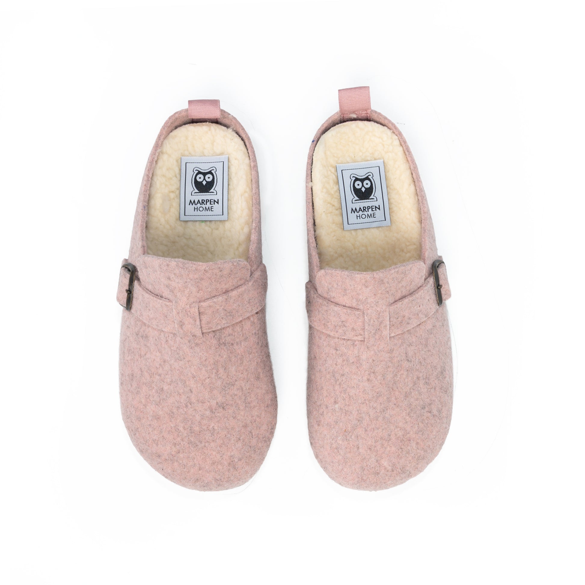 Realizadas en fieltro reciclado, un tejido que ayuda a mantener los pies cálidos con suavidad y comodidad. Este material reciclado contribuye a la sostenibilidad del planeta con un importante ahorro de agua, emisiones de CO2 y energía.