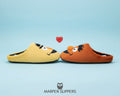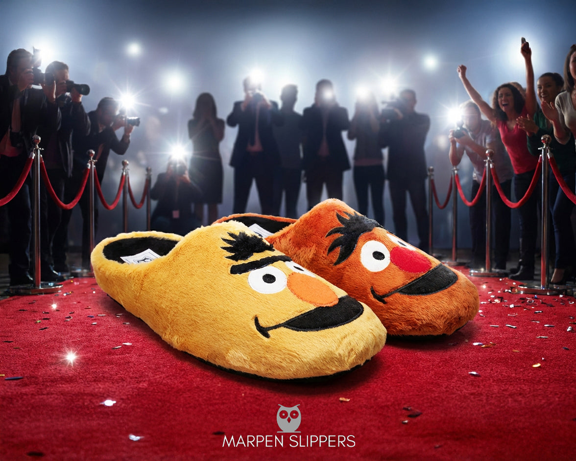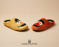 Zapatillas de andar por casa con diseño asimétrico en tonos naranja y amarillo, protagonizadas por dos personajes entrañables del universo infantil más mítico. Pura diversión vintage para tus pies.