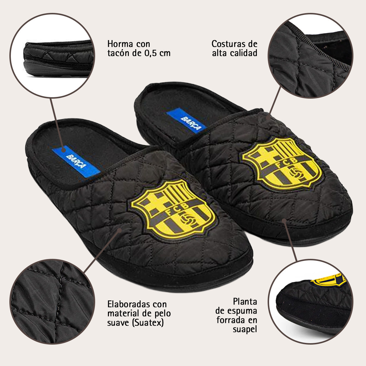 Slippers FC Barcelona Acolchadas Amatista Negro