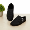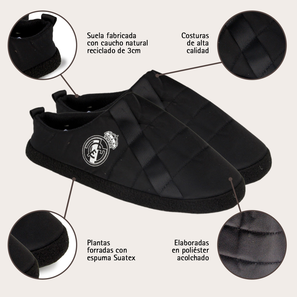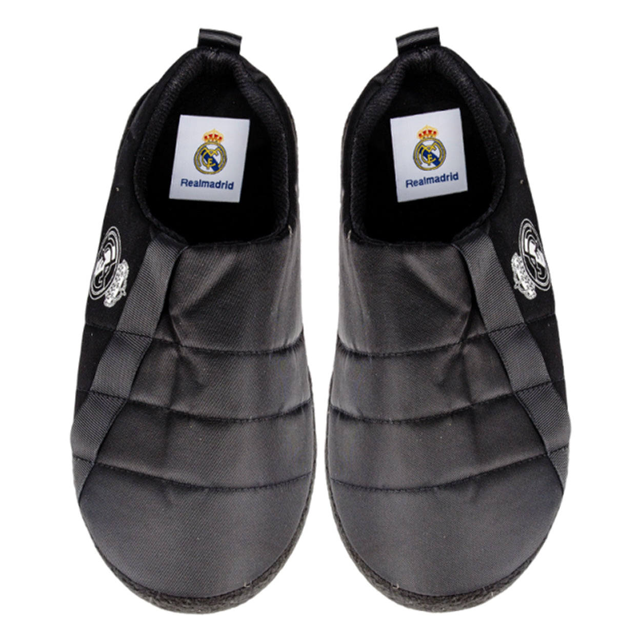 ¿Quieres llevar a tu equipo también en tus vacaciones? Con estas zapatillas de casa y exterior del Real Madrid CF en color negro es posible.
