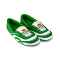 Zapatillas en formato camping con diseño de rayas. Tejido cálido, colores emblemáticos y escudo grande estampado en la pala. Además, hemos añadido como detalle unas cordoneras dibujadas y el nombre del club en el lateral.